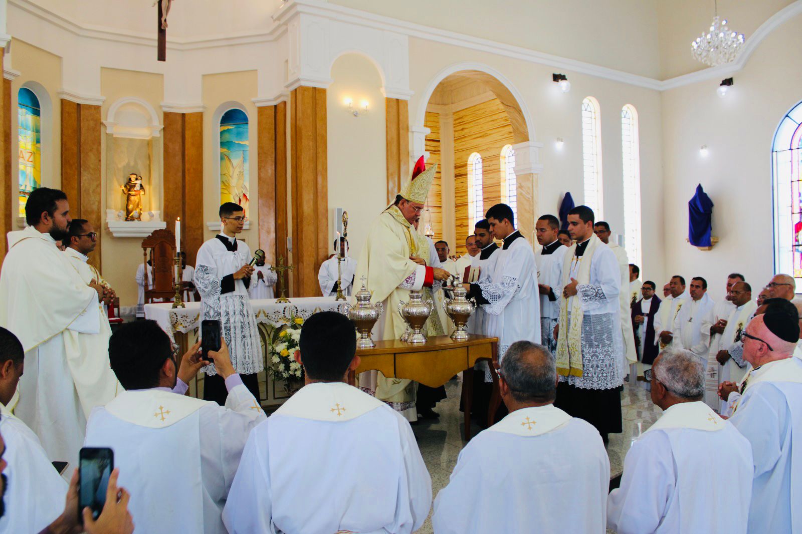 Queridos irmãos e irmãs, leigos e leigas, discípulos missionários de Cristo, Religiosas e religiosos, Amados seminaristas diocesanos, Queridos padres, cooperadores primeiros da pastoral diocesana, Que bela liturgia tão rica de sinais evidentes da presença sacramental e salvífica do Senhor. Esta celebração do Crisma, com a apresentação dos óleos que